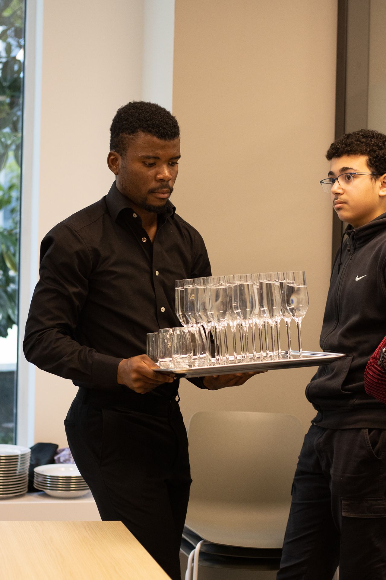 Mise en situation réelle avec apprentissage des techniques de dressage, d’organisation de table et de débarrassage efficace. Accent mis sur la précision et le sens du détail.